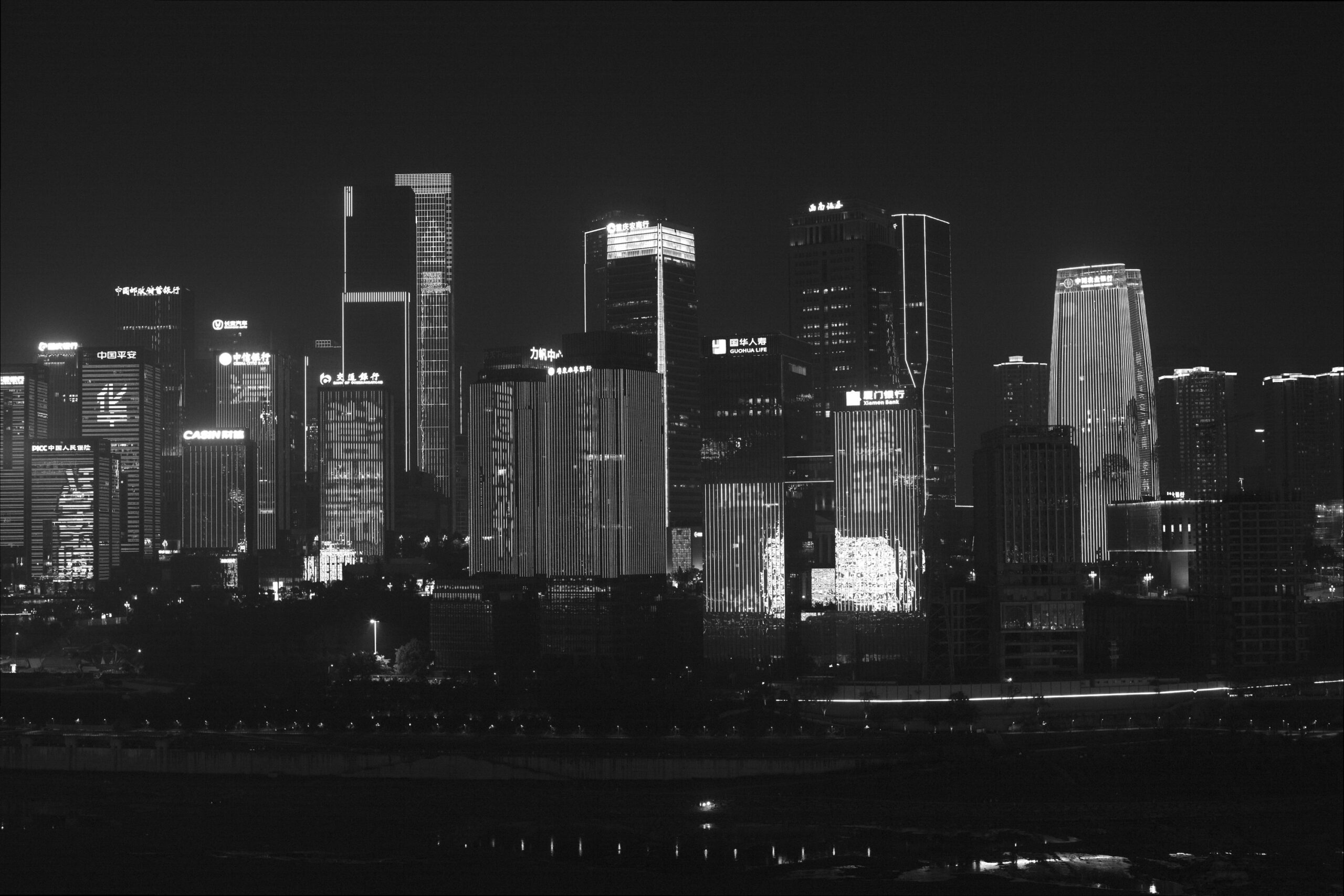 夜间重庆楼宇的灯火秀。