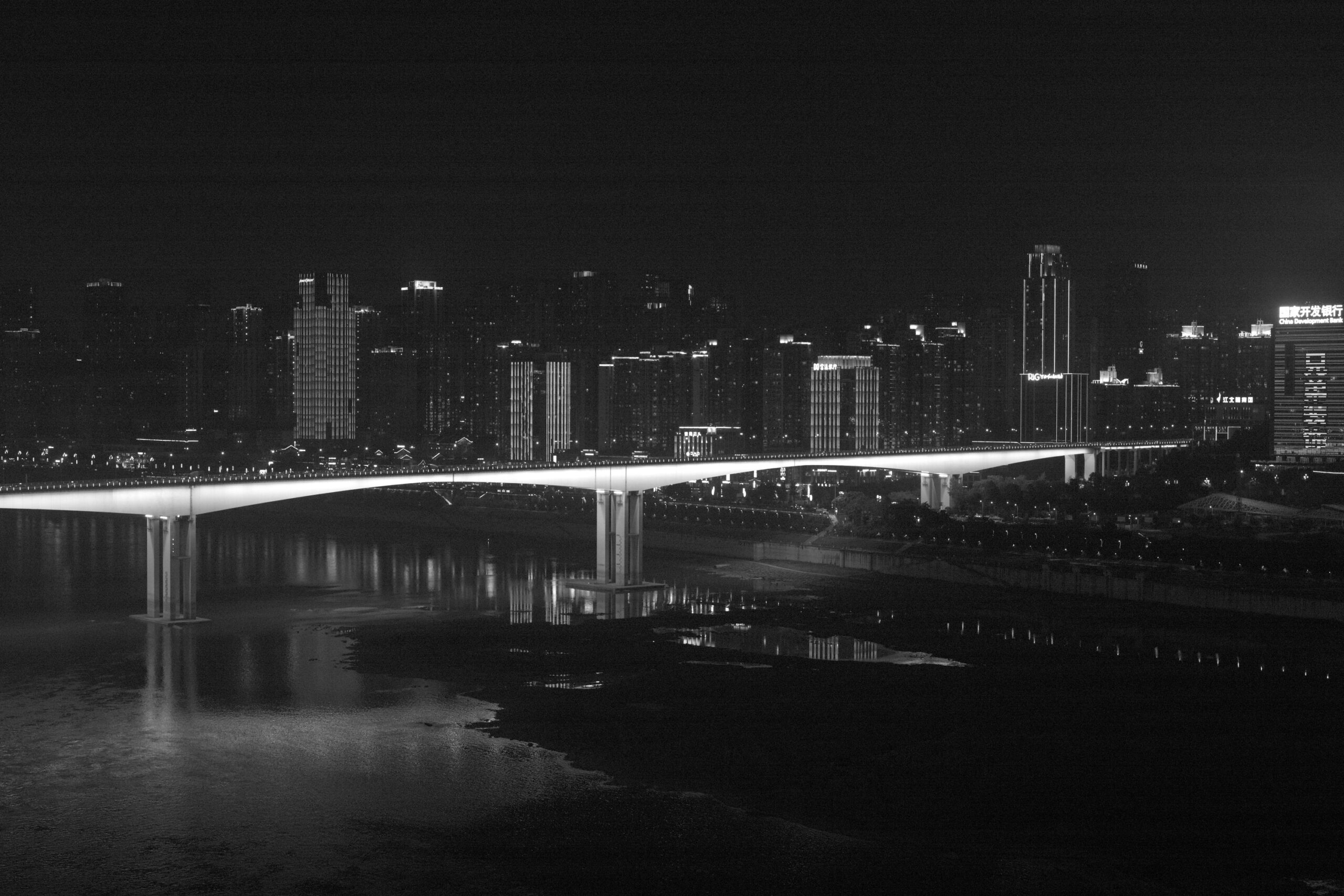 Qiansi Gate Bridge over Jialing River and Southern District in night.