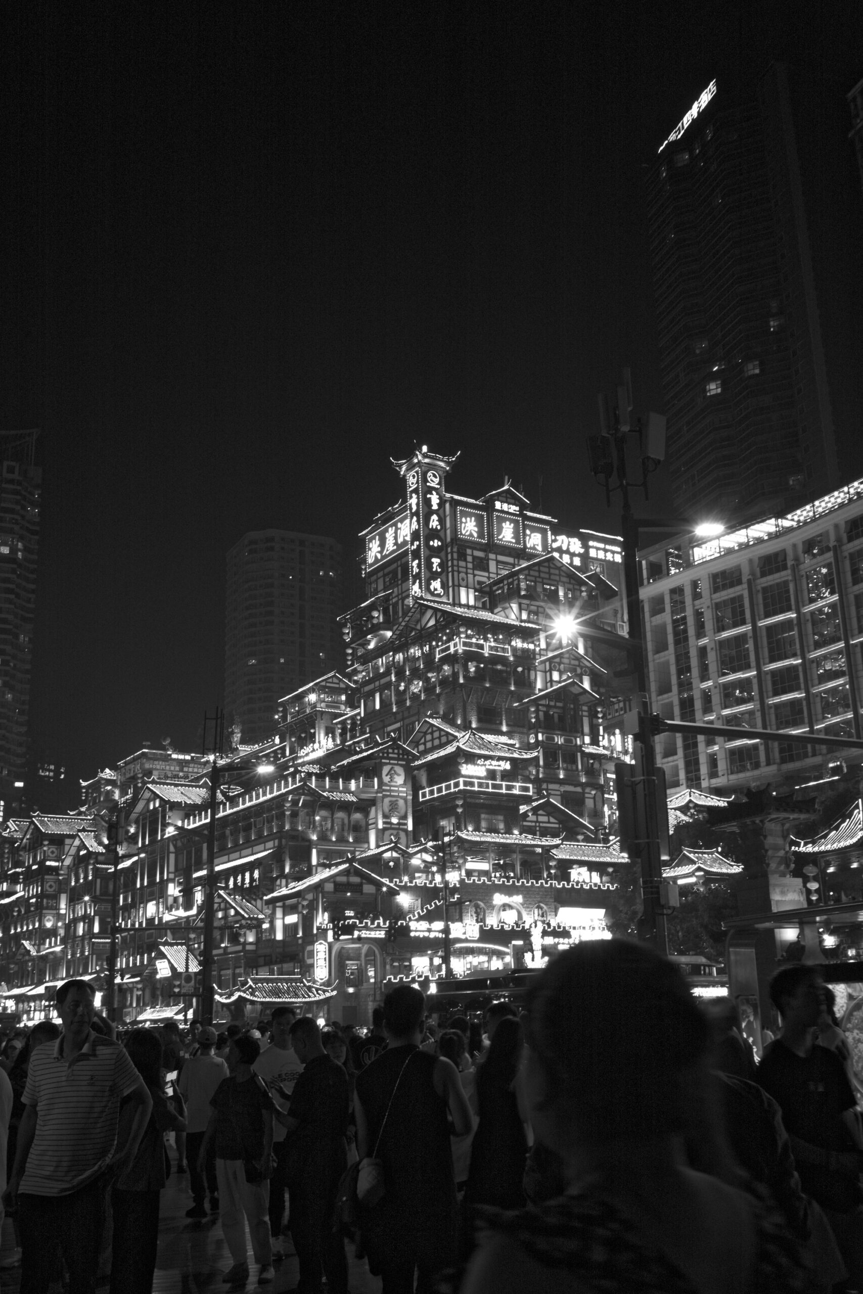 夜晚洪崖洞和游客。
